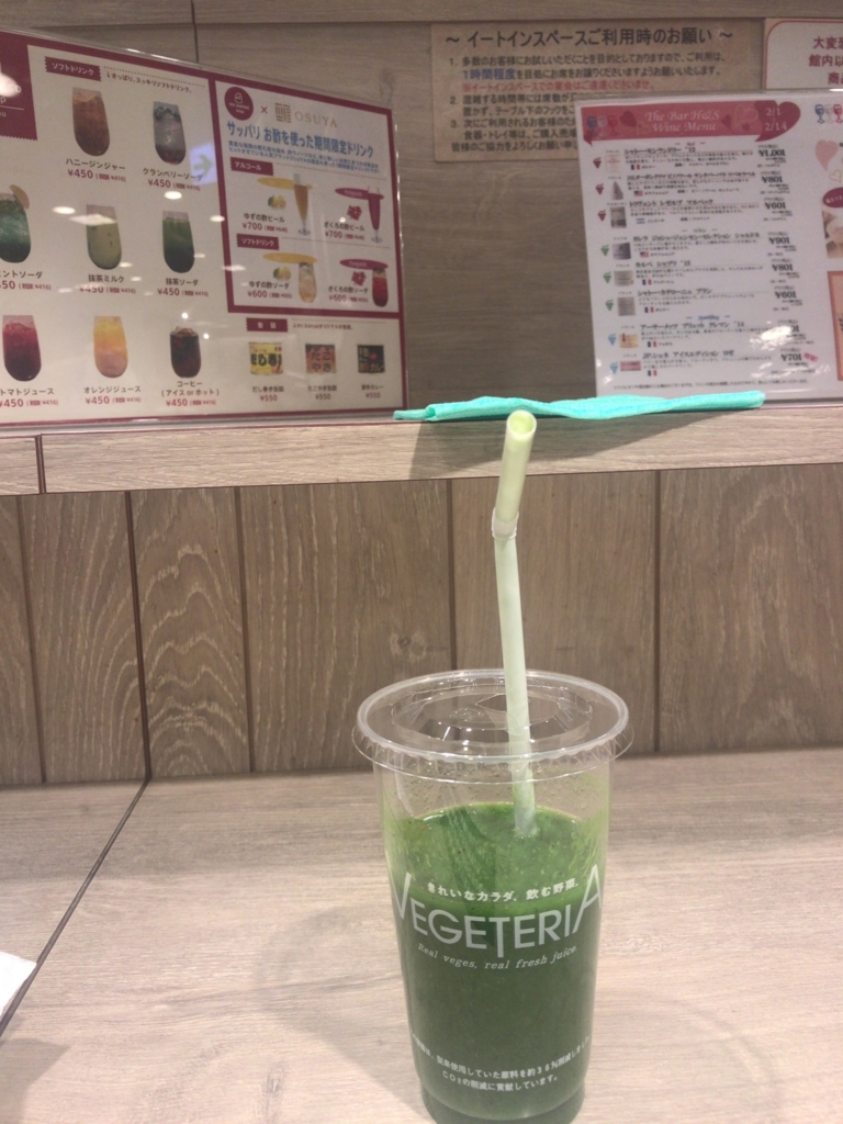 妊娠中の身、飲めない私はフレッシュジュースのお店で「キウイとケールのジュース」を。