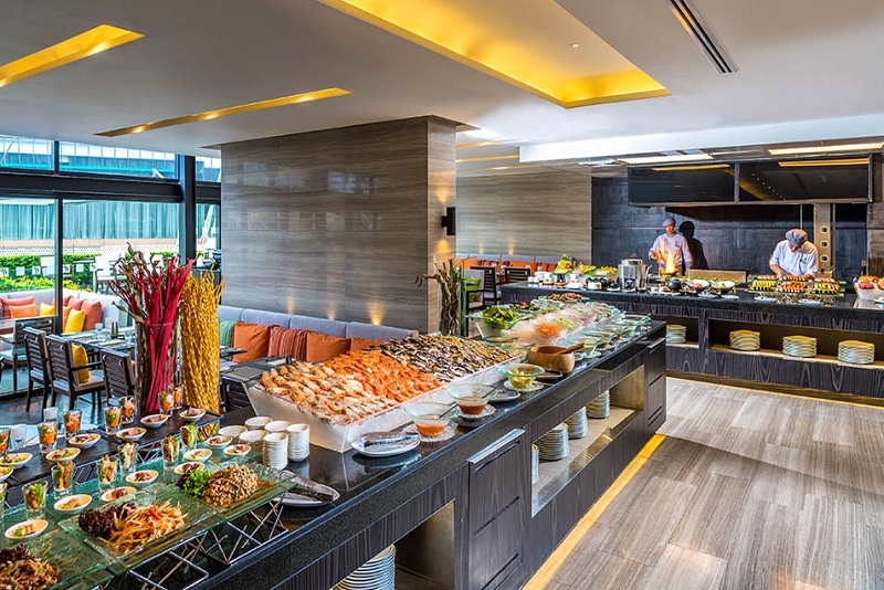 ホリデイインのレストランには3種類の麺から選べるヌードルコーナー、フィッシュボールなどのすり身のスープ、卵料理のライブキッチンがありました。