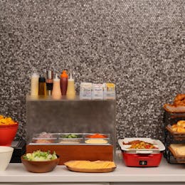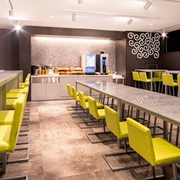 館内に入るとすぐあるのがイートスペース。朝には朝食を提供するカフェとなりますが、11時から24時の間はいつでも奥のドリンクバーからコーヒーやジュース、お茶をいただけるのがとてもありがたい・・