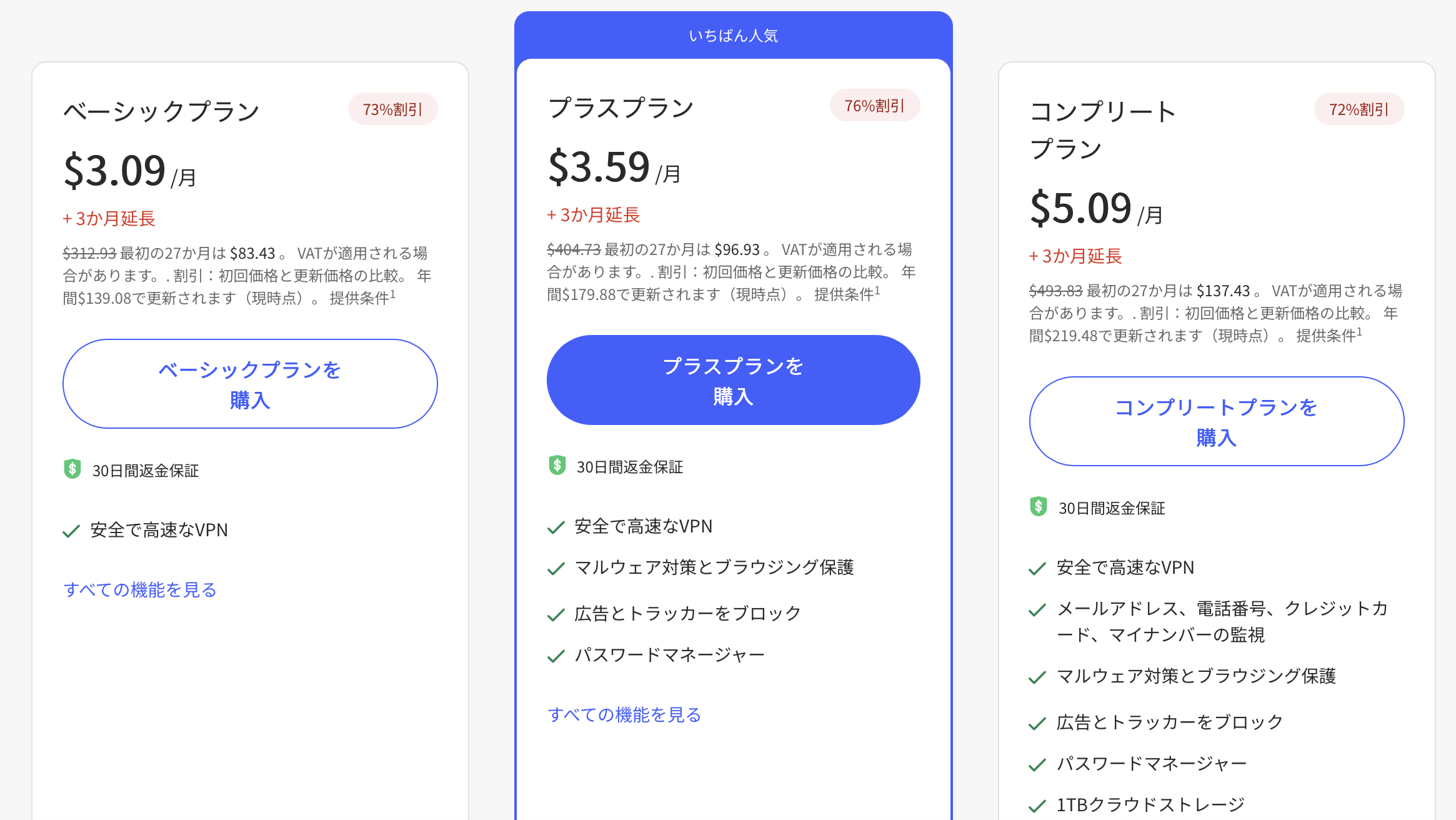 1ヶ月あたりは約$3.09(約490円)とかなりお得です。